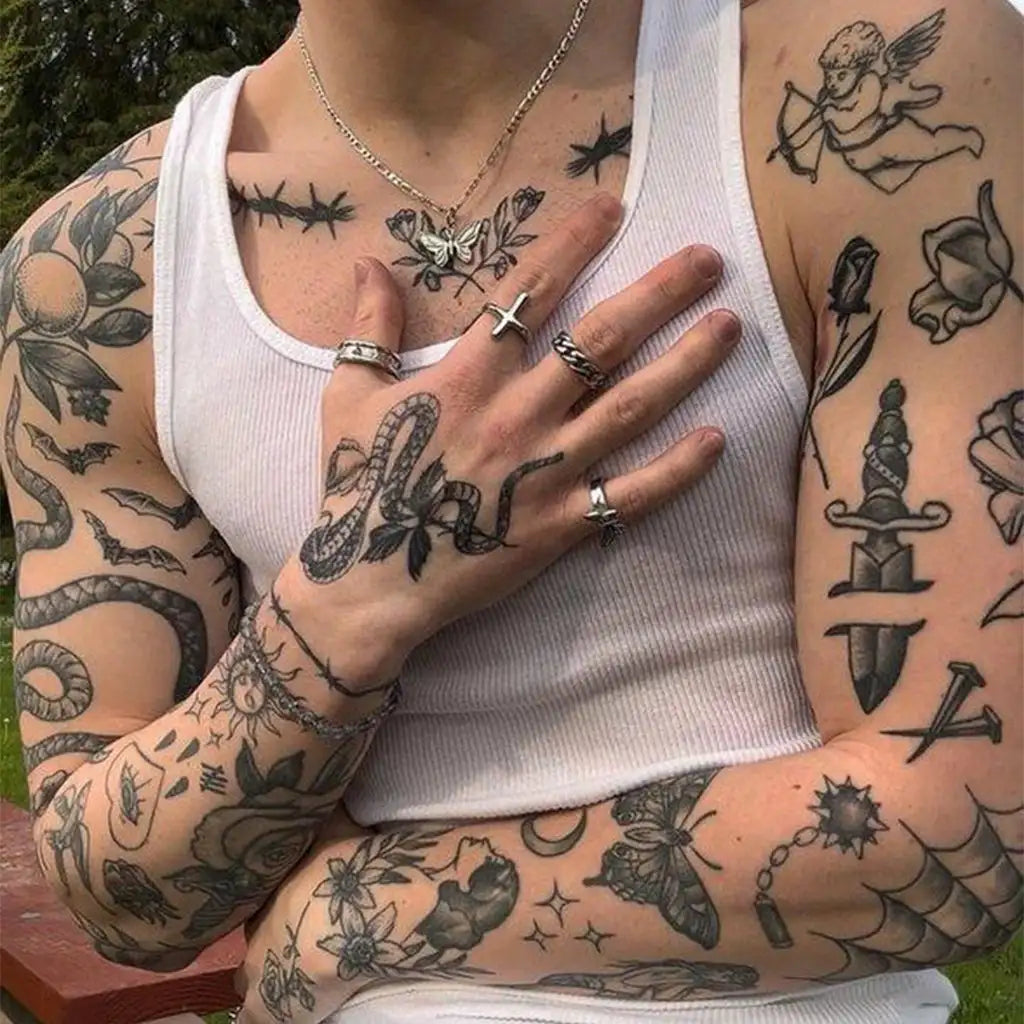 SIZE: 6X6 INCHESThis Gothic Tribal Band Tattoo Set includes three edgy designs — heart tribal,...