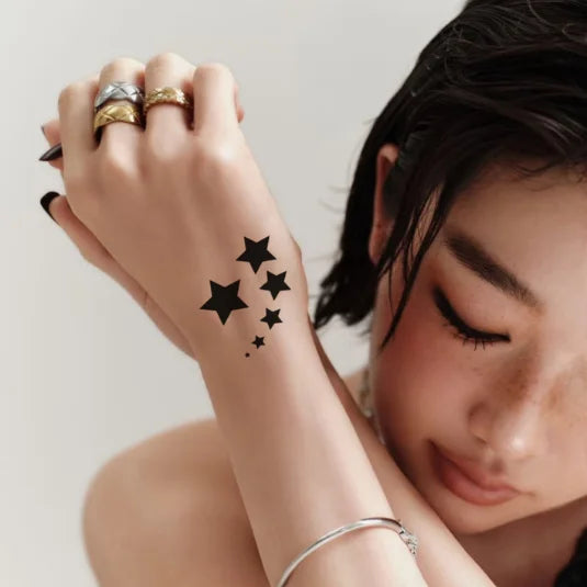A collection of minimal, feminine, and symbolic semi-permanent tattoos — from sakura and angel wings to stars and suns. Fruit-based ink, wudu-friendly, lasts up to 2 weeks.